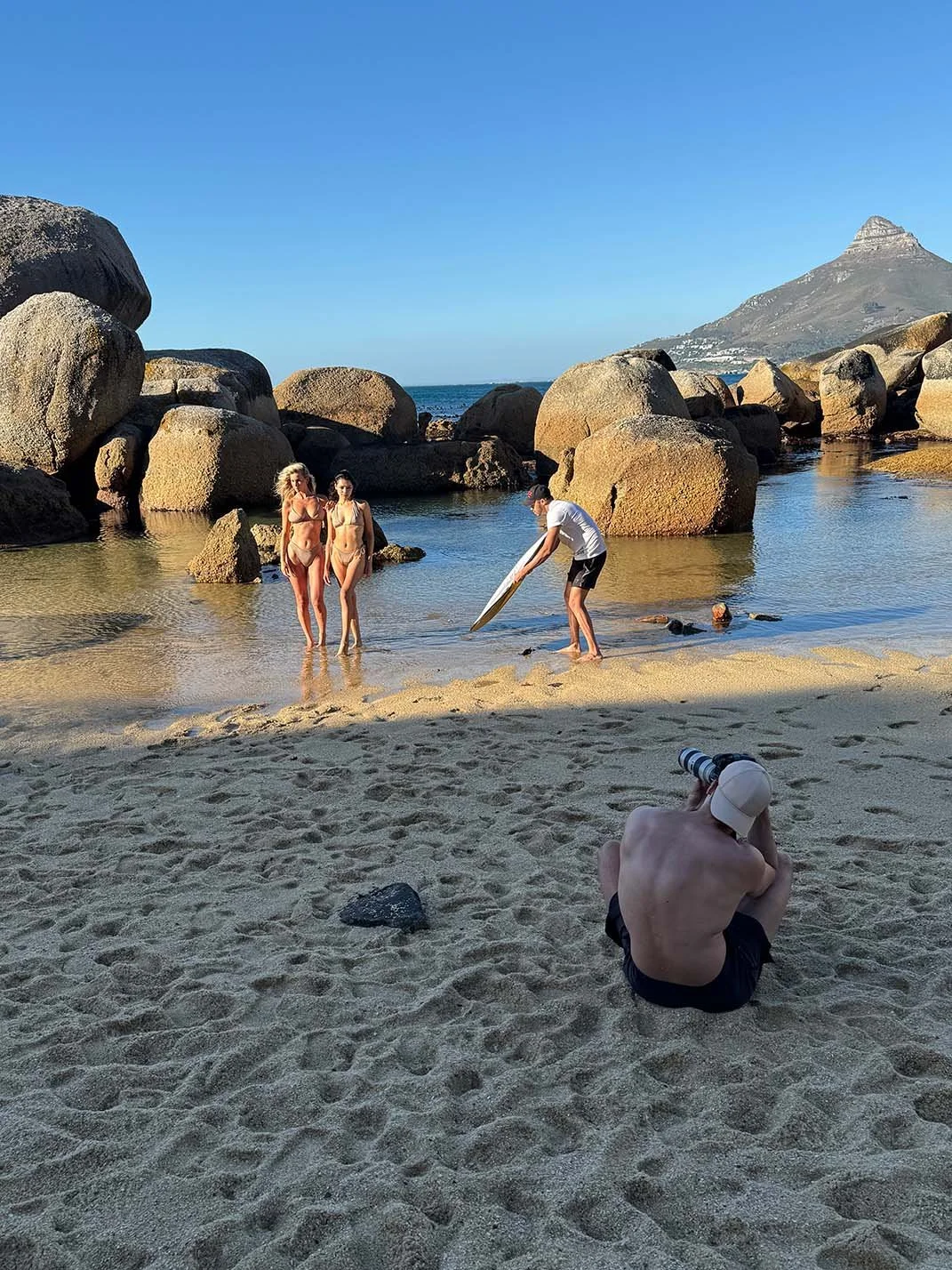 We captured the Cape Town campaign during a rare, golden window on a windswept beach. The late afternoon provided ideal low-angle lighting and unusually calm conditions, while the iconic silhouette of Lion’s Head and a rising near-full moon provided a cinematic backdrop for our most striking frames. It was one of those rare shoots where nature’s timing aligned perfectly with our vision.