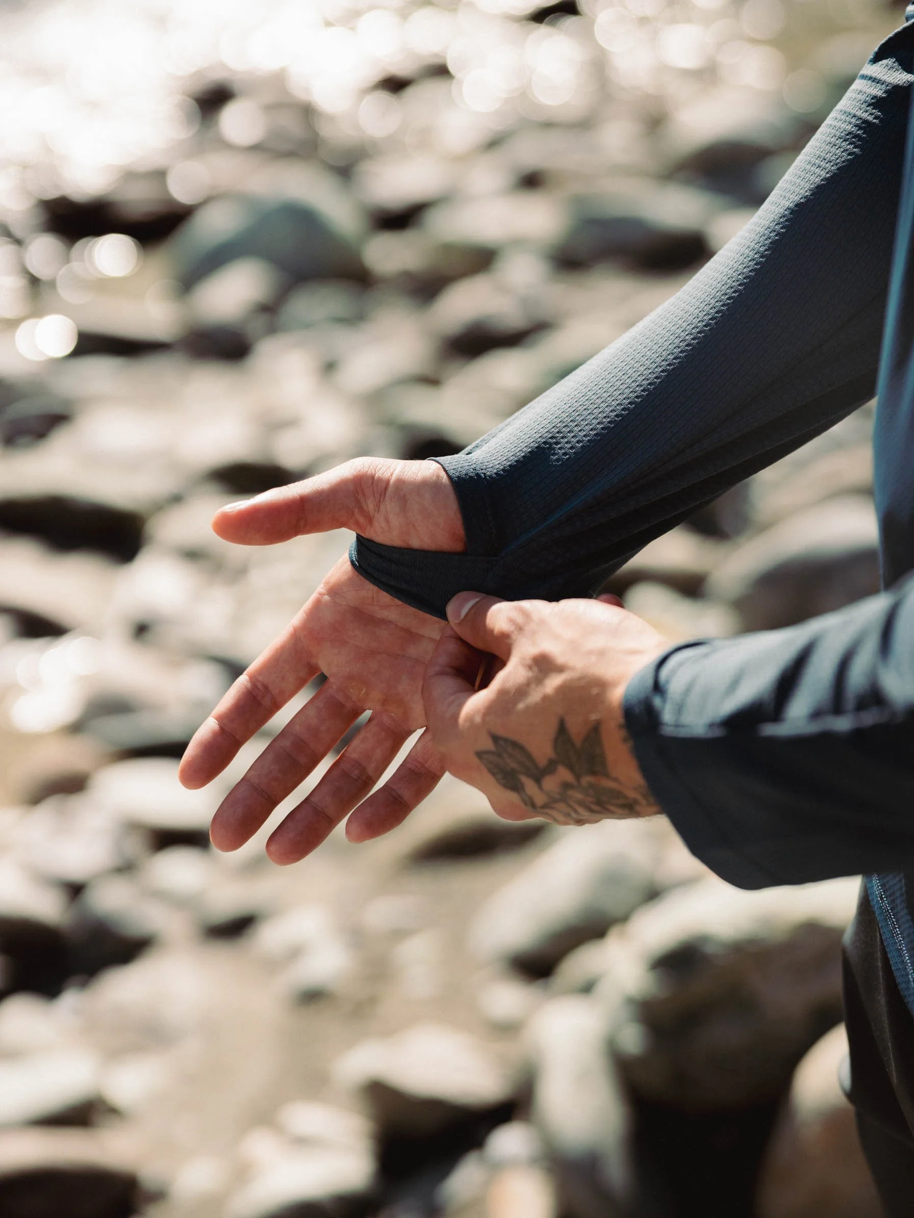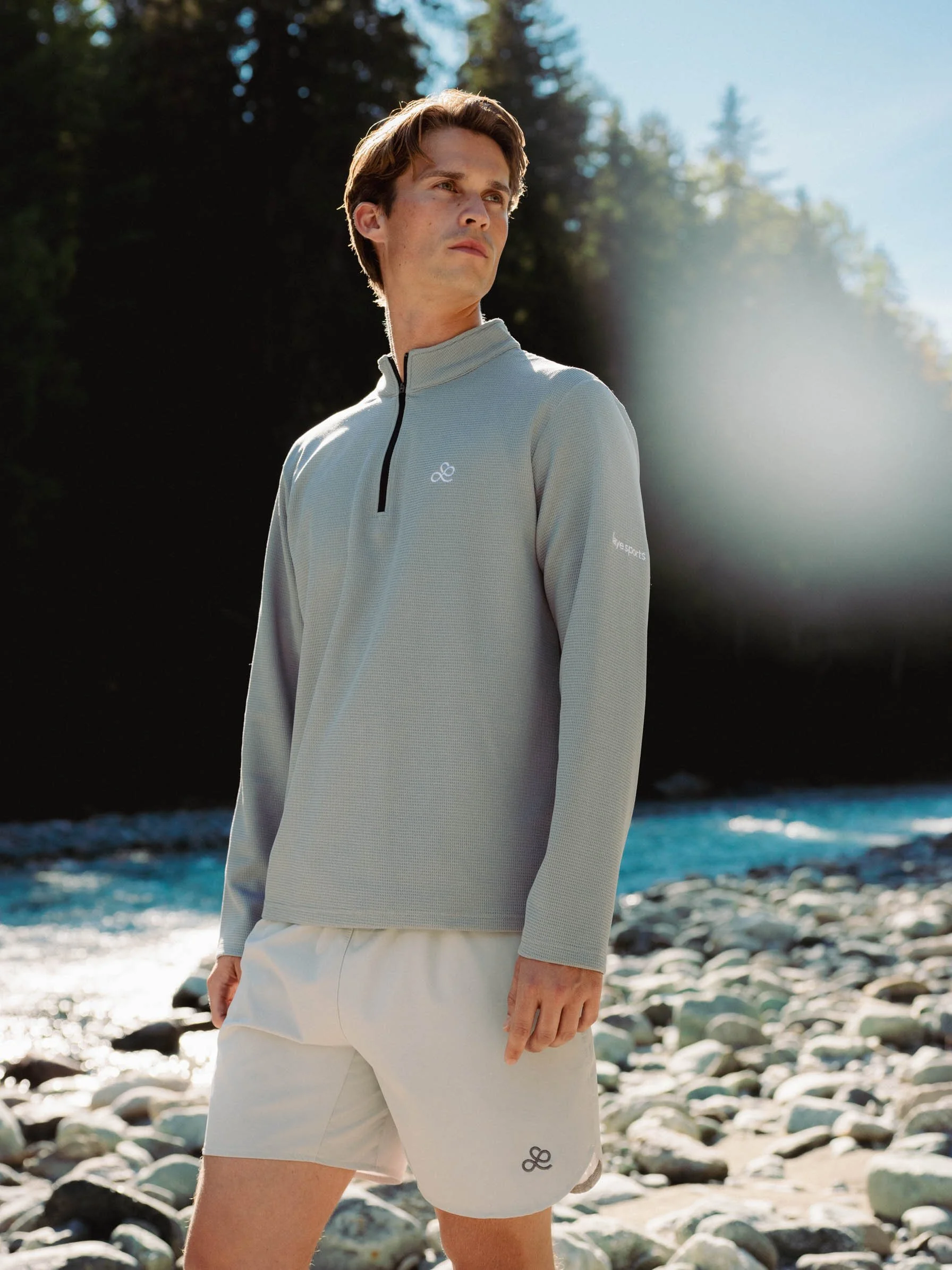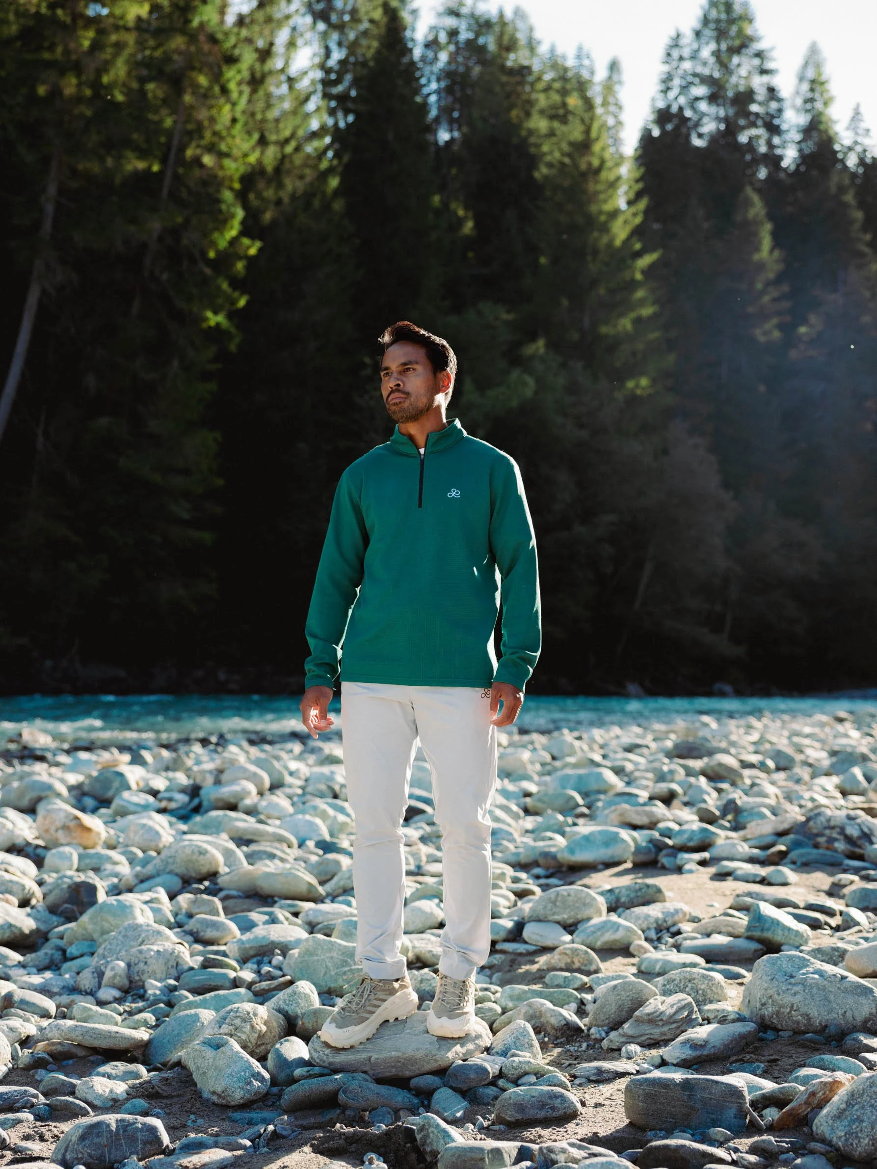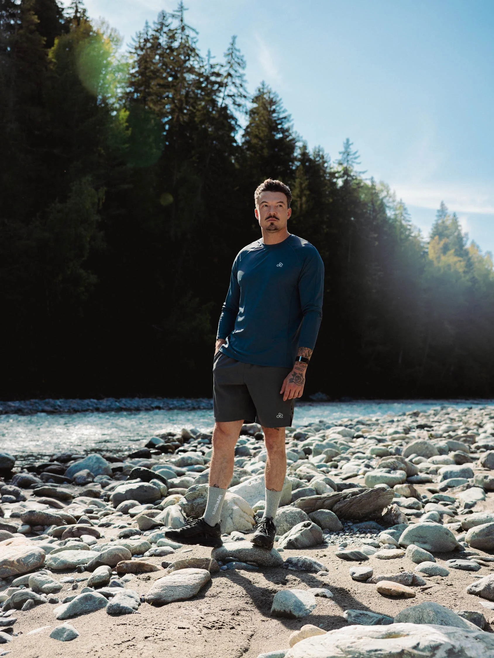 Mindflow also captured the product photography during the Swiss Alps expedition. Moving away from a conventional studio setting, we made a bold creative decision to photograph the entire collection on a natural alpine riverbed. By utilizing the rugged textures and earthy tones of the landscape, the environment mirrors and enhances the colors and mood of each piece.